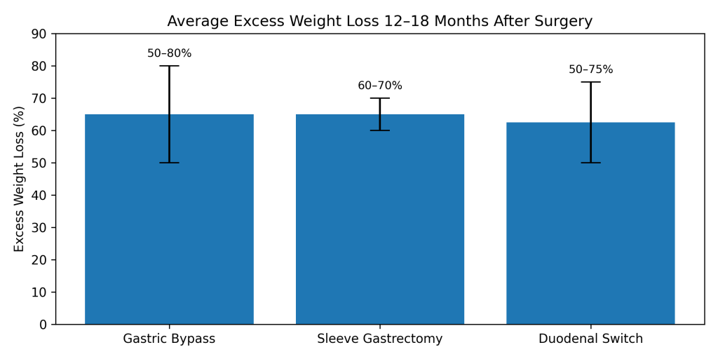 | Procedure | Expected Excess Weight Loss (12–18 months) | Evidence |